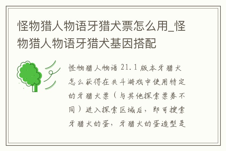 - 怪物獵人物語(yǔ)牙獵犬票怎么用_怪物獵人物語(yǔ)牙獵犬基因搭配