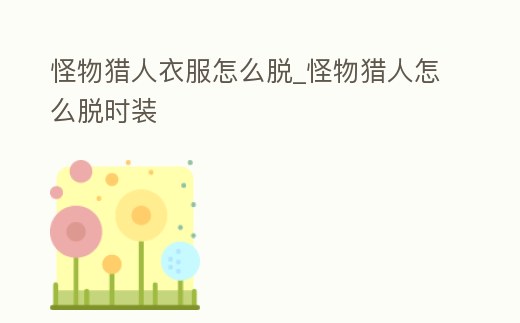 怪物獵人衣服怎么脫_怪物獵人怎么脫時(shí)裝