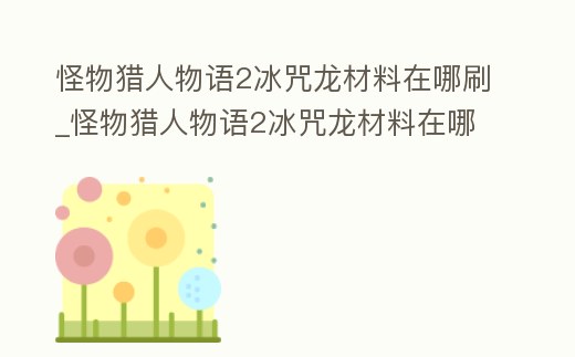 怪物獵人物語2冰咒龍材料在哪刷_怪物獵人物語2冰咒龍材料在哪刷