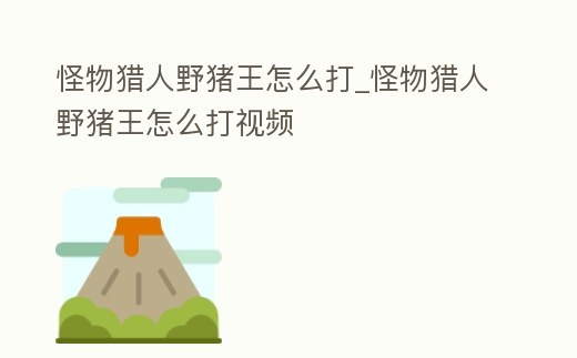 怪物獵人野豬王怎么打_怪物獵人野豬王怎么打視頻