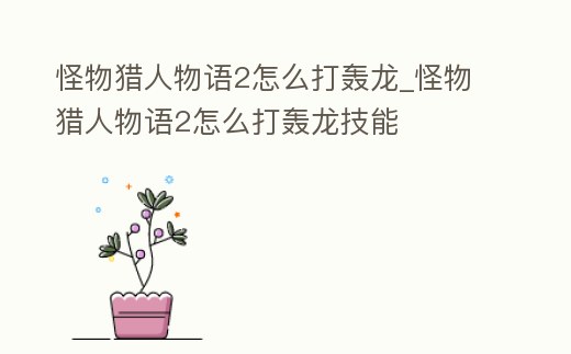 怪物獵人物語2怎么打轟龍_怪物獵人物語2怎么打轟龍技能