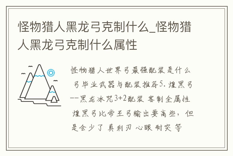 怪物獵人黑龍弓克制什么_怪物獵人黑龍弓克制什么屬性