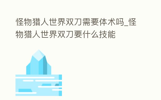 怪物獵人世界雙刀需要體術嗎_怪物獵人世界雙刀要什么技能