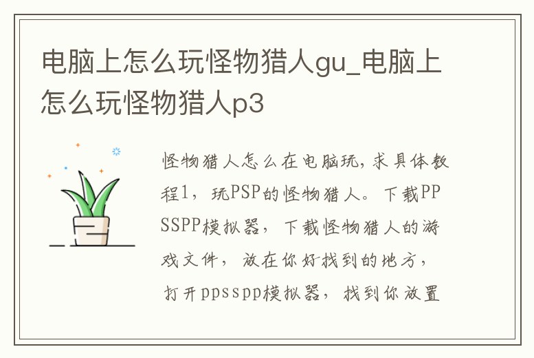 電腦上怎么玩怪物獵人gu_電腦上怎么玩怪物獵人p3
