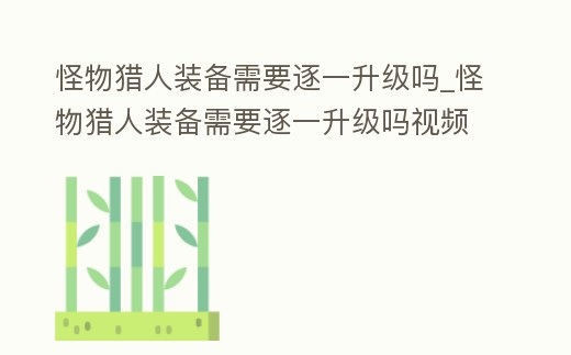 怪物獵人裝備需要逐一升級嗎_怪物獵人裝備需要逐一升級嗎視頻