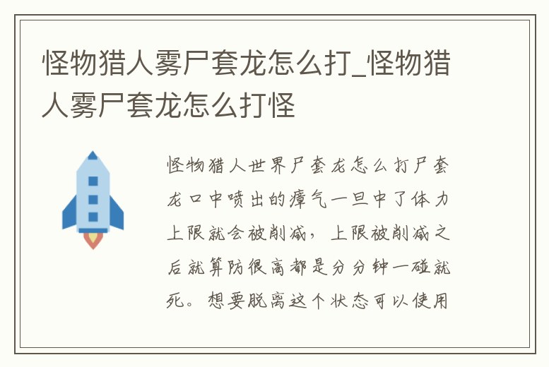 怪物獵人霧尸套龍怎么打_怪物獵人霧尸套龍怎么打怪