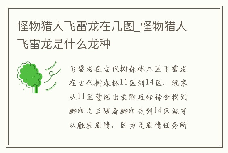 怪物獵人飛雷龍在幾圖_怪物獵人飛雷龍是什么龍種