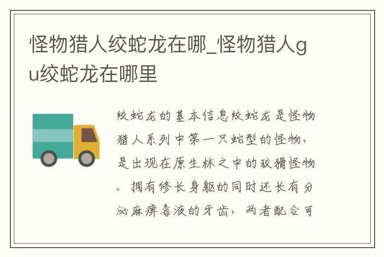 怪物獵人絞蛇龍?jiān)谀腳怪物獵人gu絞蛇龍?jiān)谀睦?/h1>