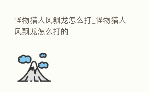 怪物獵人風飄龍怎么打_怪物獵人風飄龍怎么打的