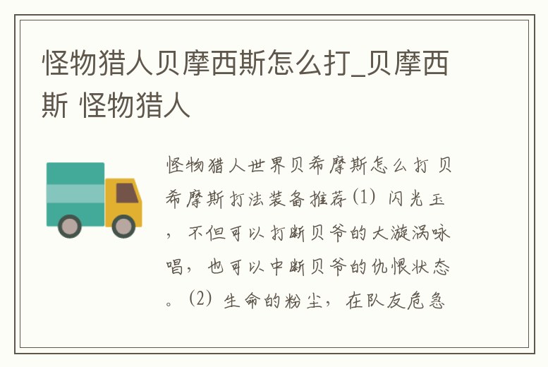 怪物獵人貝摩西斯怎么打_貝摩西斯 怪物獵人