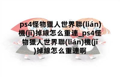 ps4怪物獵人世界聯(lián)機(jī)掉線怎么重連_ps4怪物獵人世界聯(lián)機(jī)掉線怎么重連啊