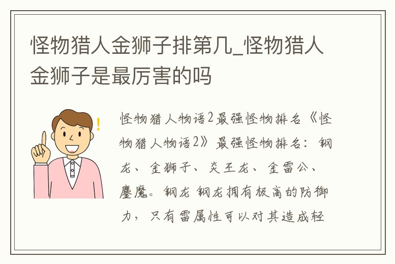 怪物獵人金獅子排第幾_怪物獵人金獅子是最厲害的嗎