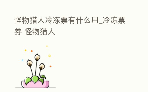 怪物獵人冷凍票有什么用_冷凍票券 怪物獵人