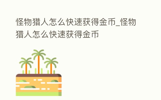 怪物獵人怎么快速獲得金幣_怪物獵人怎么快速獲得金幣