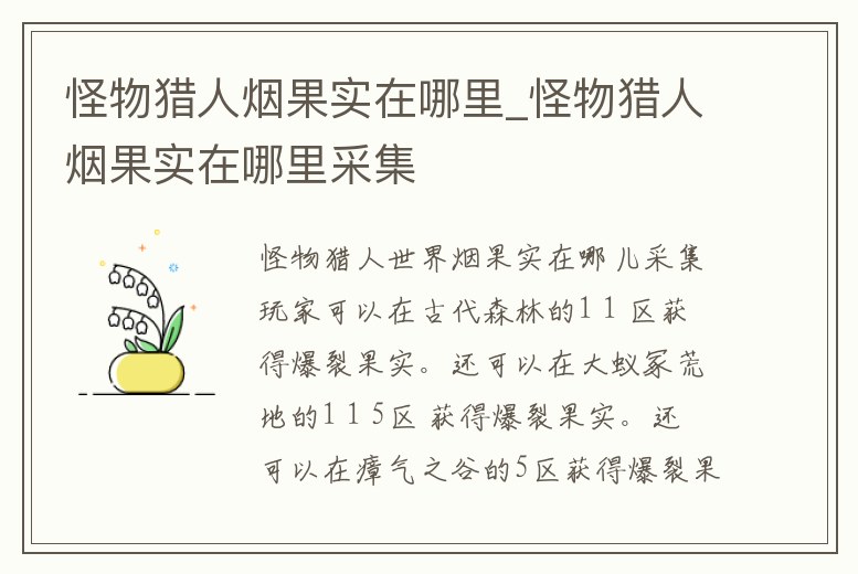 怪物獵人煙果實在哪里_怪物獵人煙果實在哪里采集