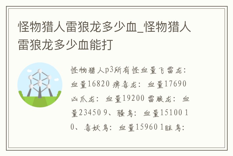 怪物獵人雷狼龍多少血_怪物獵人雷狼龍多少血能打