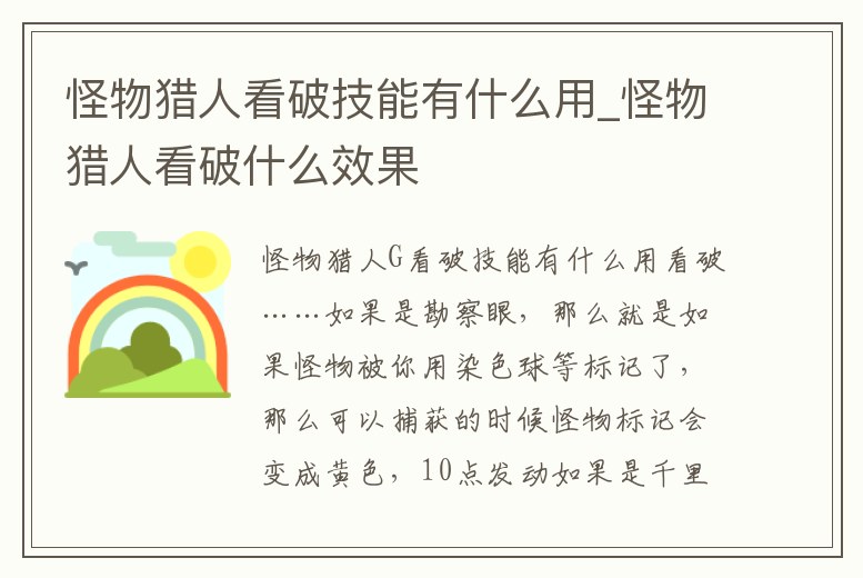 怪物獵人看破技能有什么用_怪物獵人看破什么效果