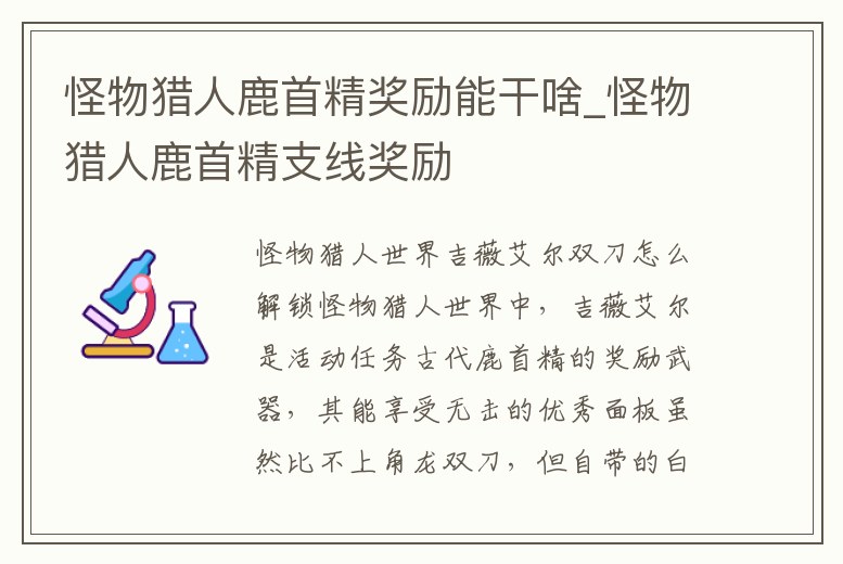 怪物獵人鹿首精獎勵能干啥_怪物獵人鹿首精支線獎勵