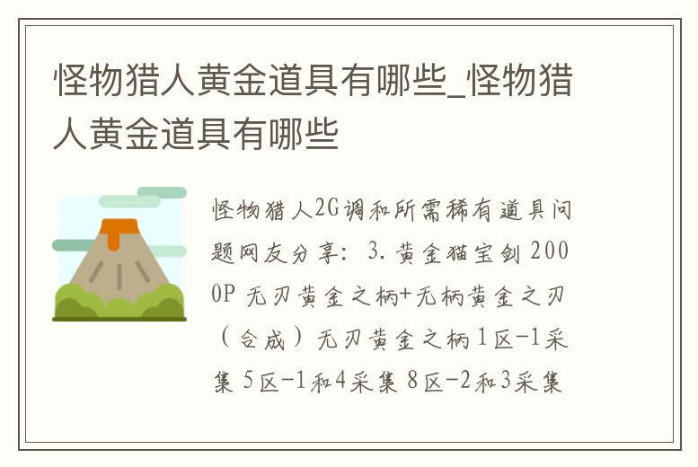 怪物獵人黃金道具有哪些_怪物獵人黃金道具有哪些