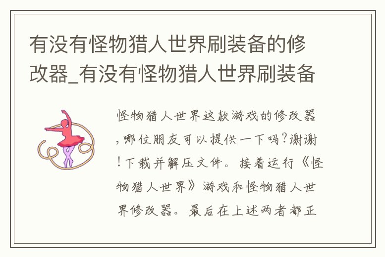 有沒有怪物獵人世界刷裝備的修改器_有沒有怪物獵人世界刷裝備的修改器游戲