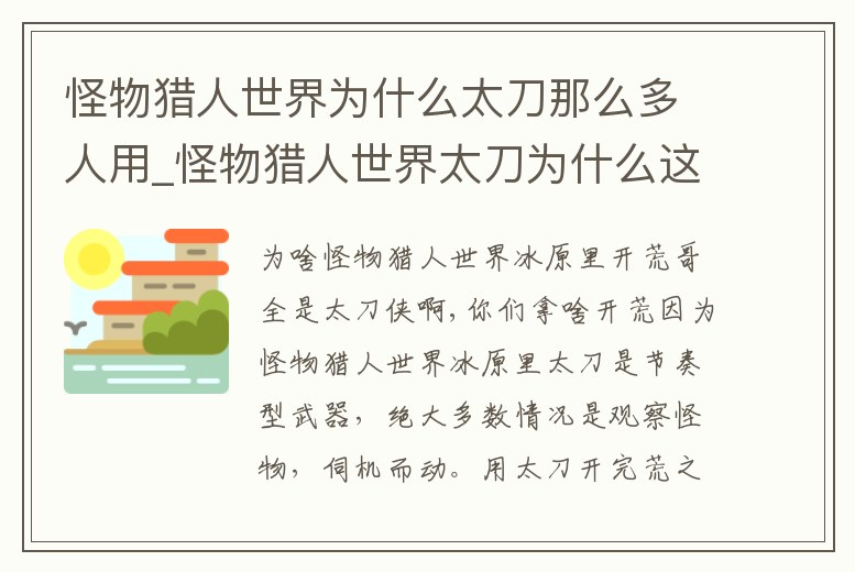 怪物獵人世界為什么太刀那么多人用_怪物獵人世界太刀為什么這么多人玩