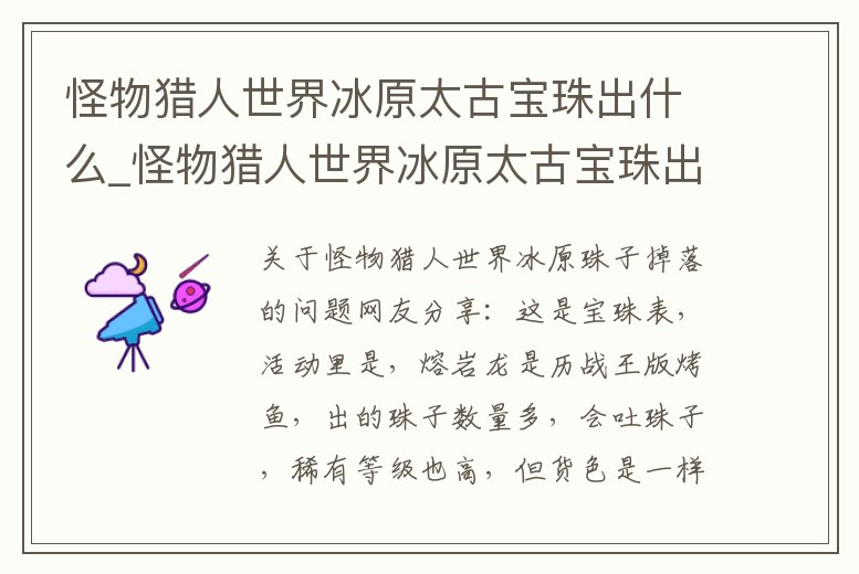 怪物獵人世界冰原太古寶珠出什么_怪物獵人世界冰原太古寶珠出什么