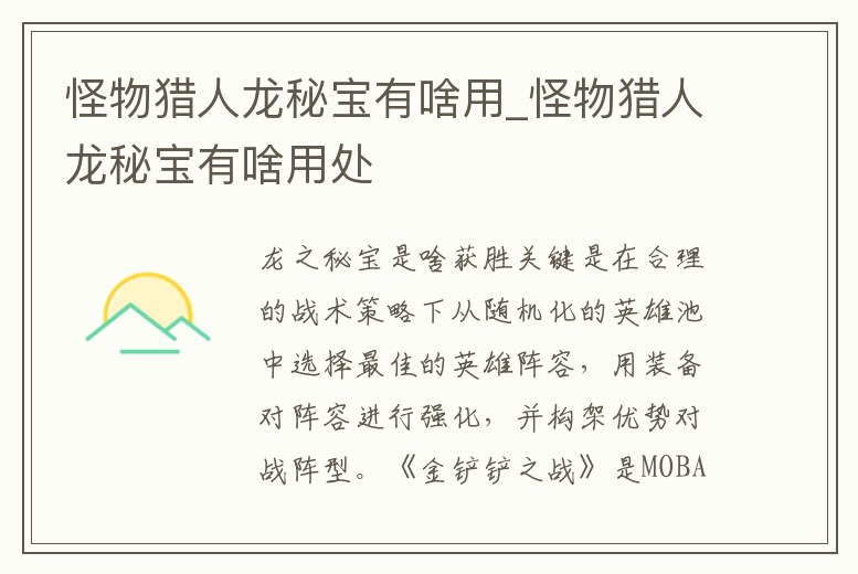 怪物獵人龍秘寶有啥用_怪物獵人龍秘寶有啥用處