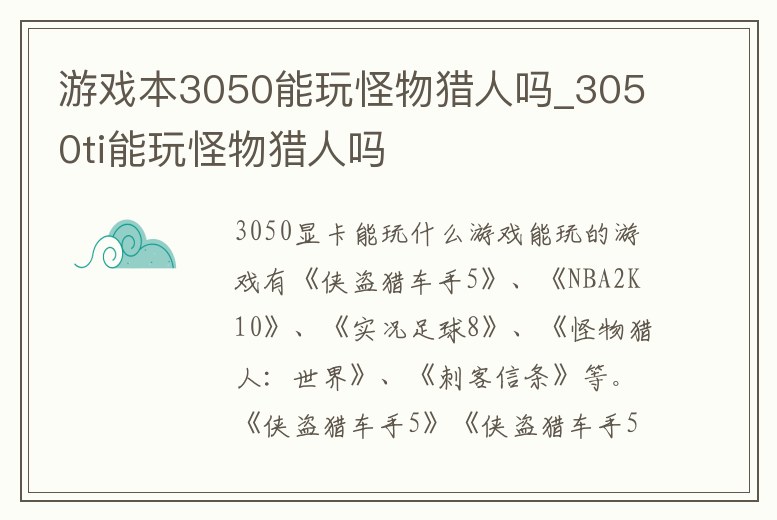 游戲本3050能玩怪物獵人嗎_3050ti能玩怪物獵人嗎