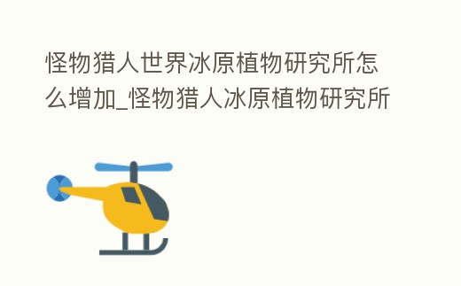 怪物獵人世界冰原植物研究所怎么增加_怪物獵人冰原植物研究所怎么解鎖多個植物