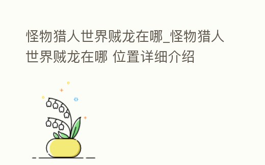 - 怪物獵人世界賊龍?jiān)谀腳怪物獵人世界賊龍?jiān)谀?位置詳細(xì)介紹