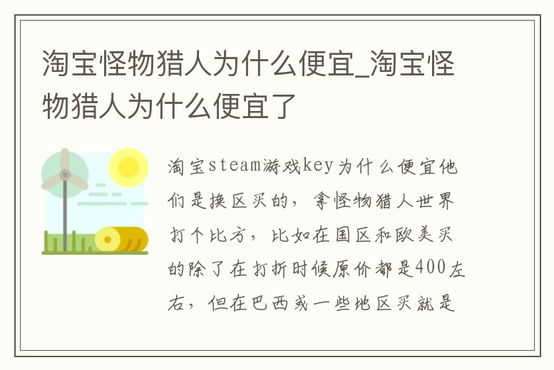 淘寶怪物獵人為什么便宜_淘寶怪物獵人為什么便宜了