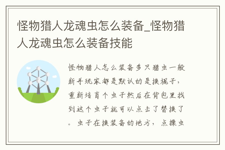 - 怪物獵人龍魂蟲怎么裝備_怪物獵人龍魂蟲怎么裝備技能