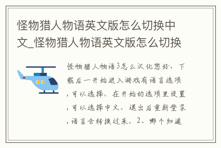怪物獵人物語英文版怎么切換中文_怪物獵人物語英文版怎么切換中文字幕