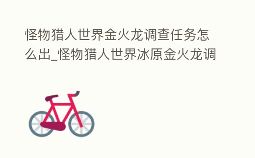 怪物獵人世界金火龍調查任務怎么出_怪物獵人世界冰原金火龍調查任務怎么出