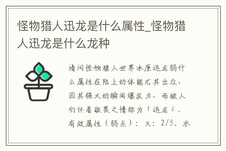 怪物獵人迅龍是什么屬性_怪物獵人迅龍是什么龍種