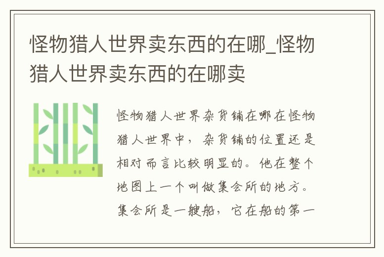 怪物獵人世界賣東西的在哪_怪物獵人世界賣東西的在哪賣