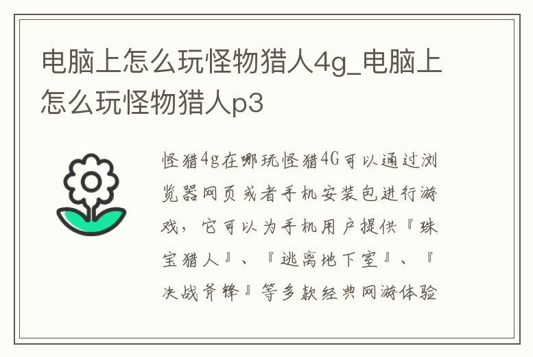 電腦上怎么玩怪物獵人4g_電腦上怎么玩怪物獵人p3
