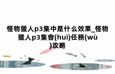 怪物獵人p3集中是什么效果_怪物獵人p3集會(huì)任務(wù)攻略