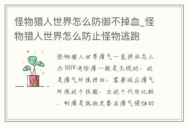 怪物獵人世界怎么防御不掉血_怪物獵人世界怎么防止怪物逃跑