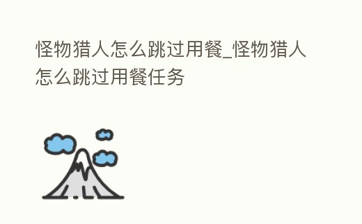 怪物獵人怎么跳過用餐_怪物獵人怎么跳過用餐任務
