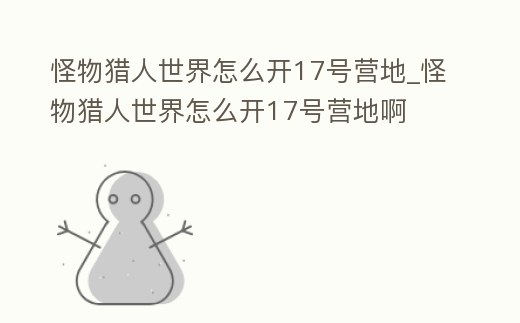 怪物獵人世界怎么開17號營地_怪物獵人世界怎么開17號營地啊