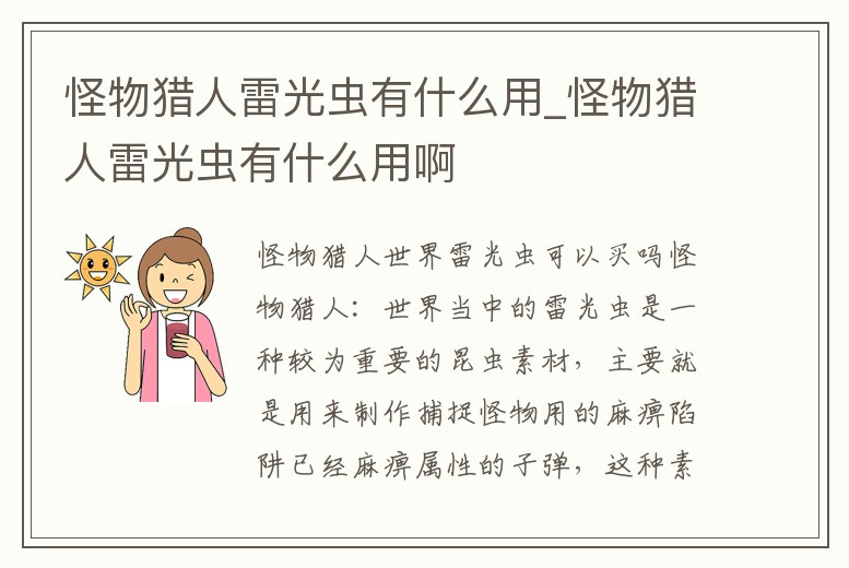 怪物獵人雷光蟲有什么用_怪物獵人雷光蟲有什么用啊