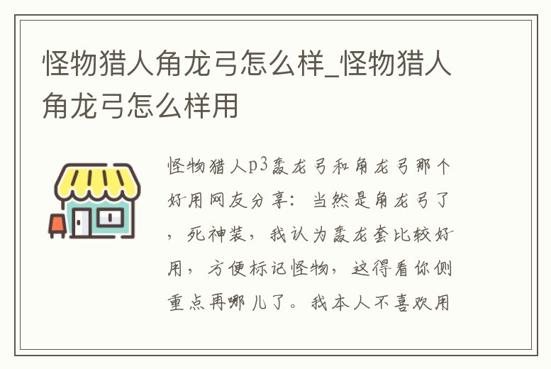 怪物獵人角龍弓怎么樣_怪物獵人角龍弓怎么樣用