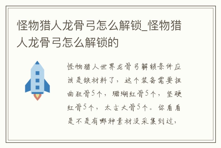 怪物獵人龍骨弓怎么解鎖_怪物獵人龍骨弓怎么解鎖的
