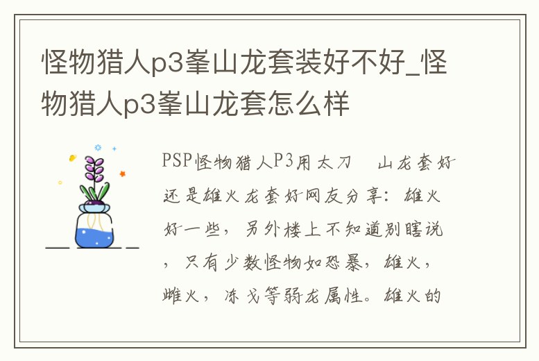PSP怪物獵人P3用太刀峯山龍套好還是雄火龍套好