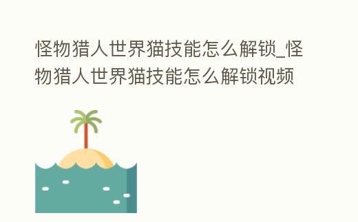 怪物獵人世界貓技能怎么解鎖_怪物獵人世界貓技能怎么解鎖視頻