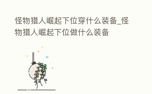 怪物獵人崛起下位穿什么裝備_怪物獵人崛起下位做什么裝備