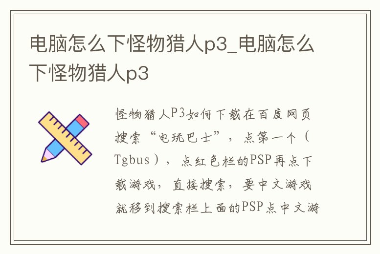 電腦怎么下怪物獵人p3_電腦怎么下怪物獵人p3