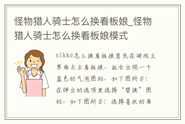 怪物獵人騎士怎么換看板娘_怪物獵人騎士怎么換看板娘模式