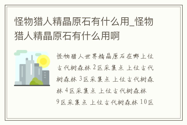 怪物獵人精晶原石有什么用_怪物獵人精晶原石有什么用啊